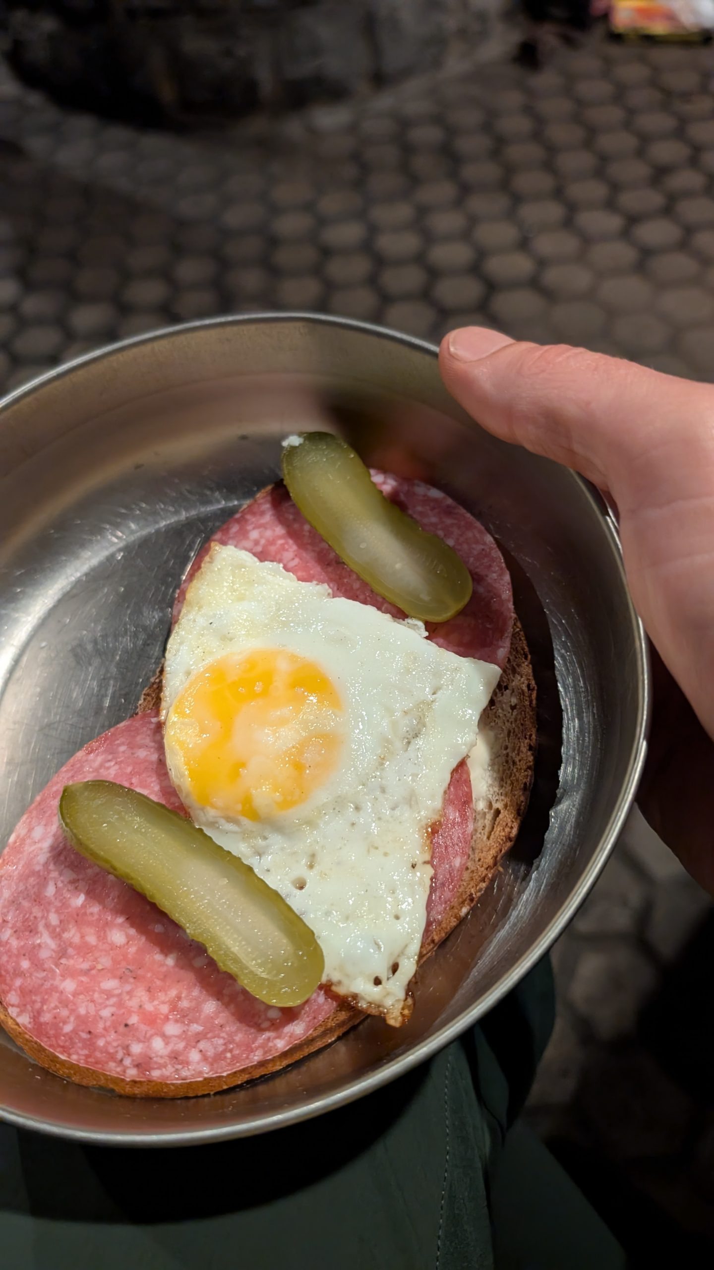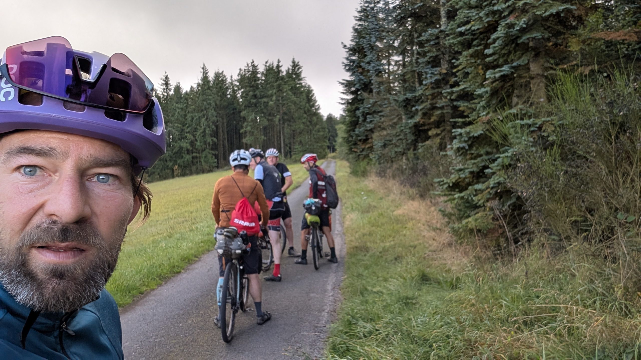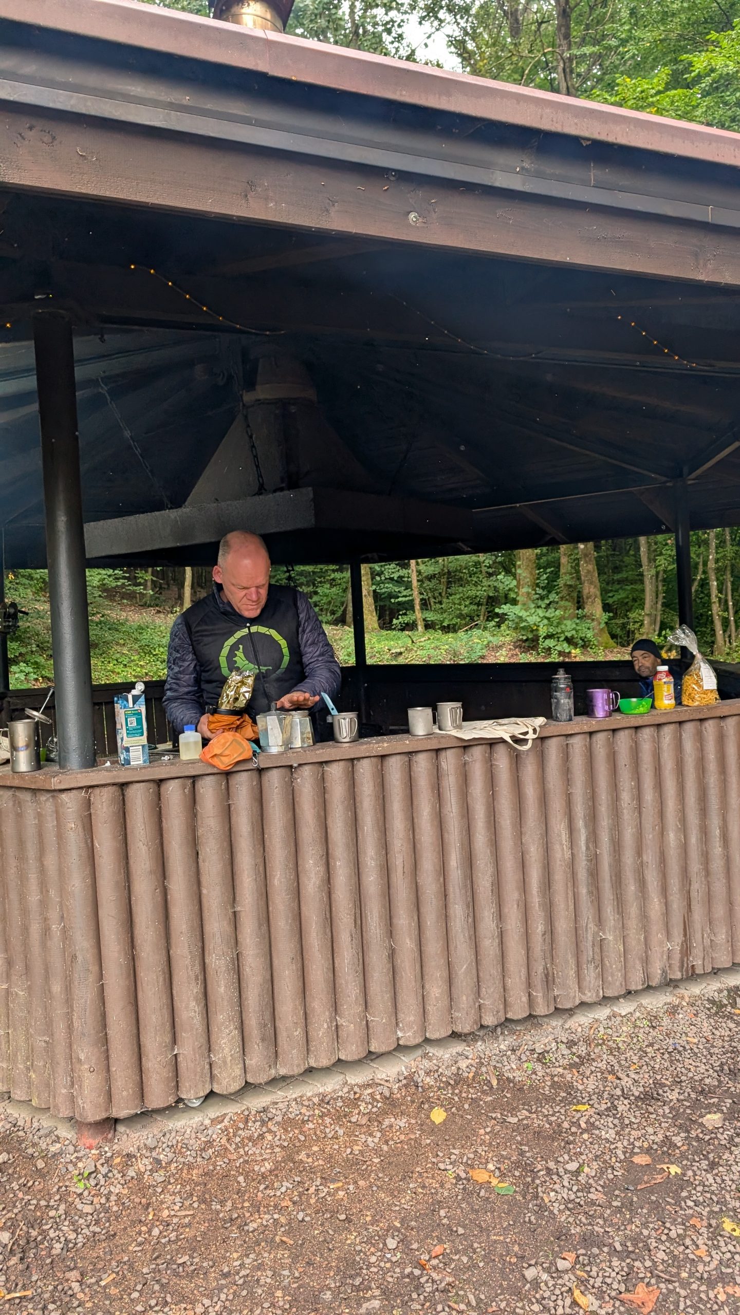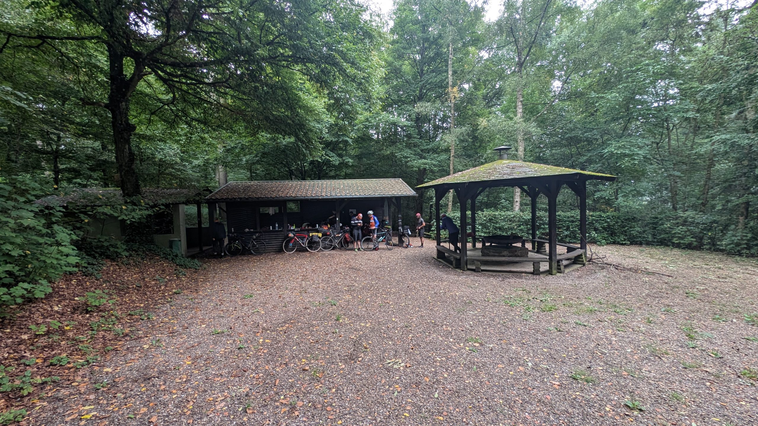 Kumpeltour 2025 – i arrive on the fourth day of the tour, checked to find the crew in the hundsrück area. This year the mode was that someone had to plan the route for a day with threee secret topics. I found Franky on the way and we made it to a supermarket where we rested for half an hour in fact of of heavy rain. There we met the others and we rolled easy to a nice hut Holger reserved. I got the storys of the days before and we had a nice bbq, a “strammer max” (one of holger’s challenges) and a silent, dry night. Lovely first day. 🔥