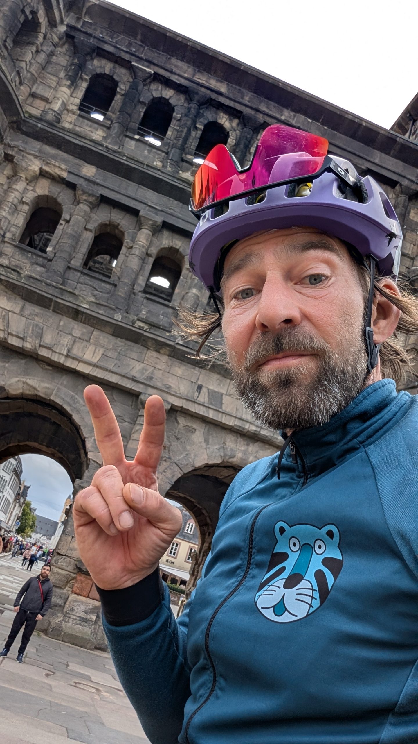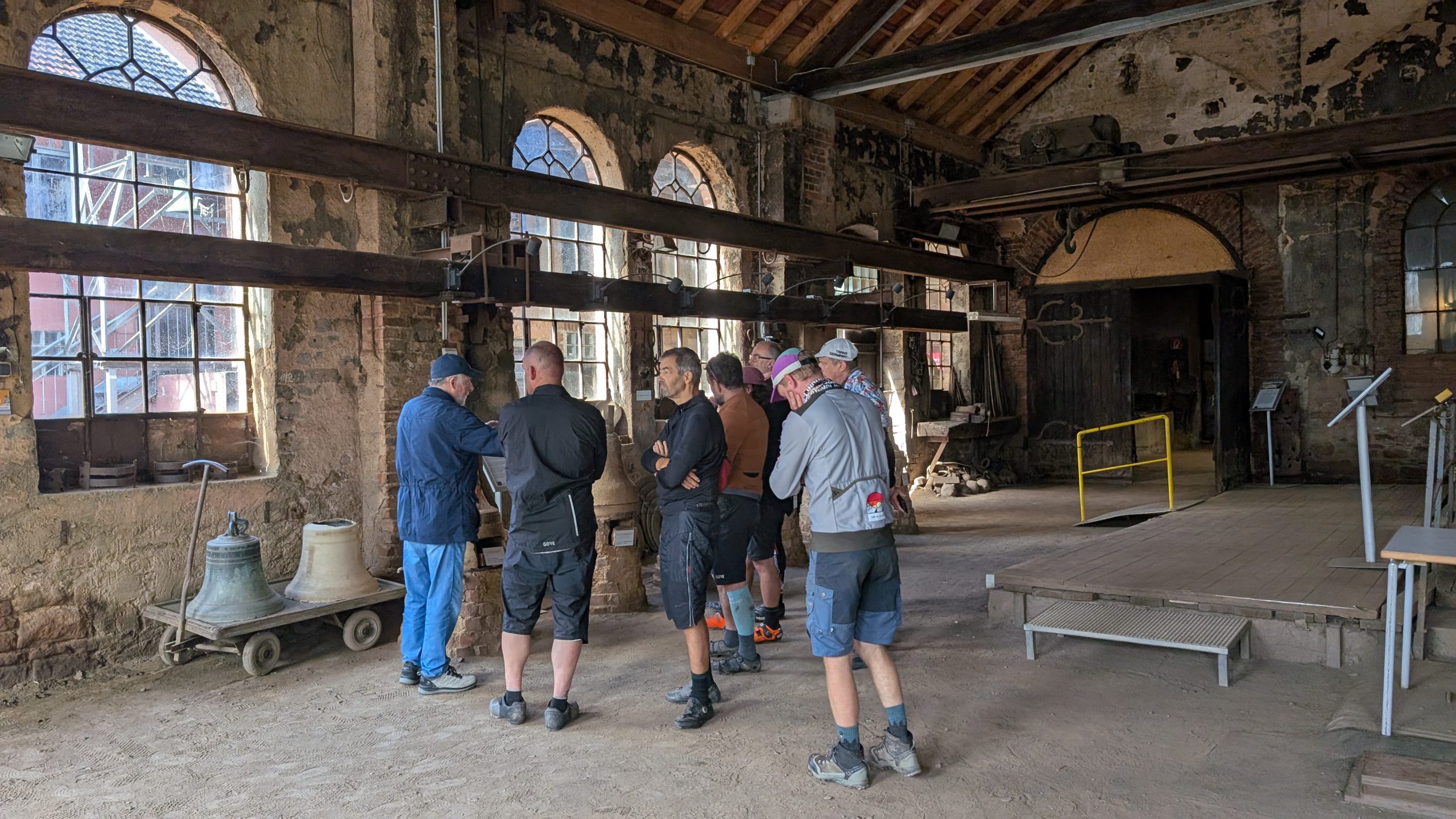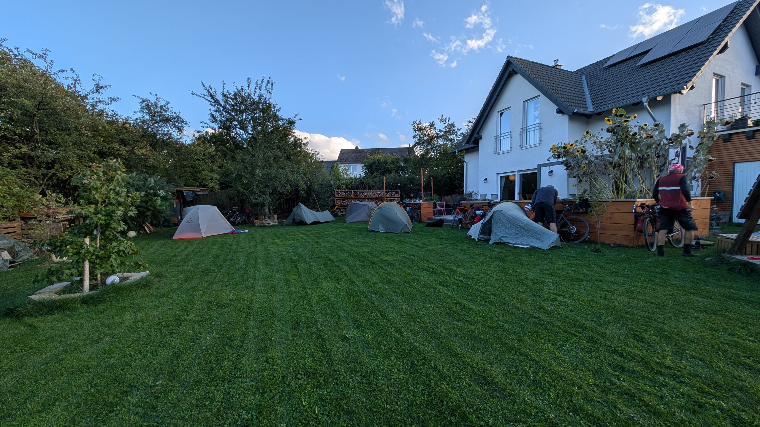 Day six. Gunnar took over as substitute for one ‘kumpel’ who can’t make it. First a downhill, you wouldn’t ride 😉 Direction Saar and visit ‘Kulturgiesserei Saarburg’. Very interesting how and why bells were made. Lovely scenerys on the way, forest paths, ups and downs. We checked a supermarktet before we headed to a private garden as camp ground. That was a bit crazy. The owners of the house were watching tv inside while we had a camp fire and diner. 😉