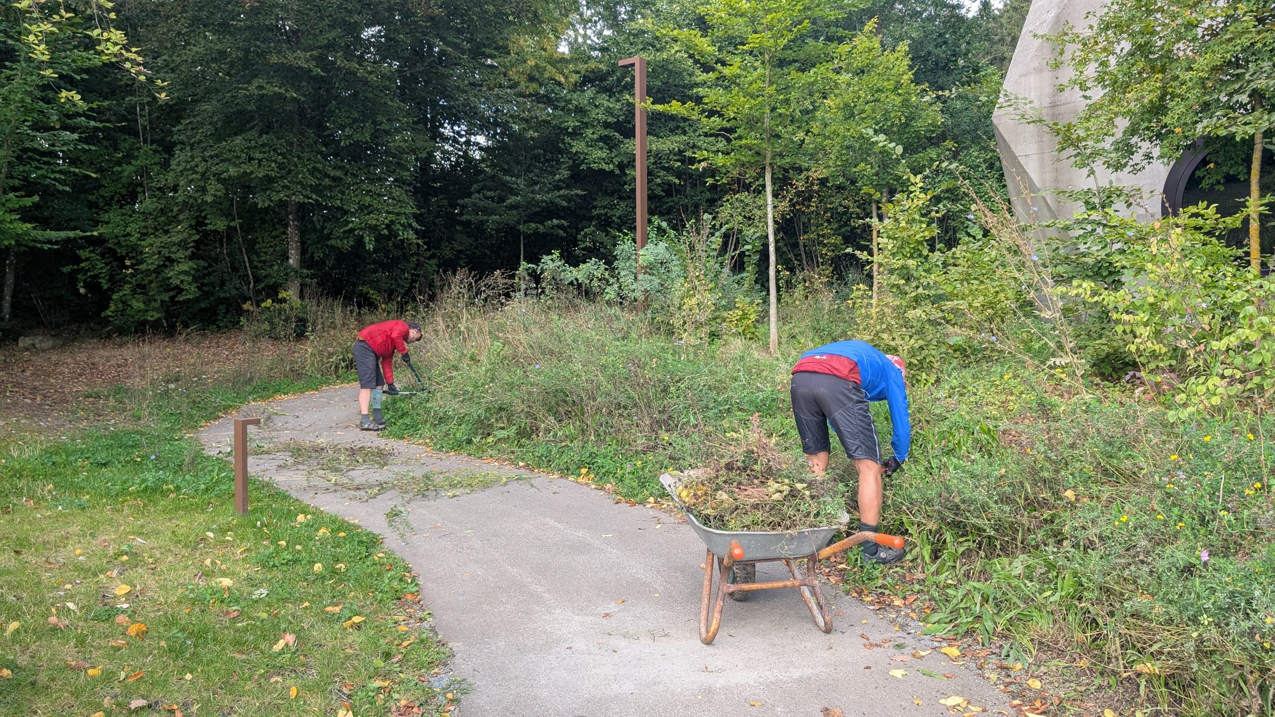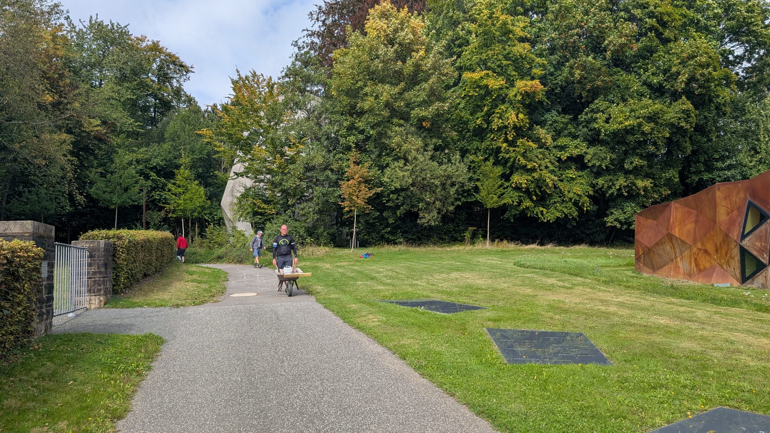 Day seven. My day. My challenges were: do about one hour of anti fashist work or something similar, a lake for a swim and integrate a simbol or letter in the tour which is not seen in first. I got in contact with the Gedenkstätte Hinzert and offered our help. We could do some cleaning in the garden for a upcoming celebration. Nice. We also got a private guide for the Gedenkstätte and after the work a coffee, cookies and talk. It was emotional for all of us. The lake was justed passed in fact of the weather. We crossed a celtic ringfort in form of a heart. All challenges done. For the night we hat a lovey hut again. There are many of them in the area you can book. Lovely arrangement! For the last day we had just easy five k’s to a trainstation were we took the train(s) home in our directions. It was such a pleasure again to meet the kumpel’s and have quality time with them. 🫶🏻